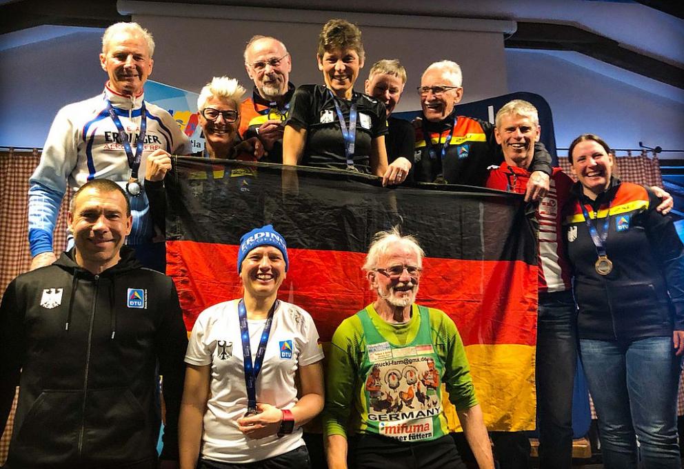 Über die zweite internationale Medaille nach der WM in Asiago freuten sich auch Peter Grünebach (AK 70) und Günter Birnbaum. Die beiden Athleten durften neben Carmen Putz (AK 30), Beate Pelani (AK 50), Angela Boczek (AK 55), Hella Eggeling (AK 35) und Reinhardt Engert (AK 65) bei der Siegesfeier einen Platz auf dem Podium einnehmen. Carsten Eggeling (AK 50) fehlten in einem lange spannenden Rennen am Ende nur neun Sekunden zur Bronzemedaille.