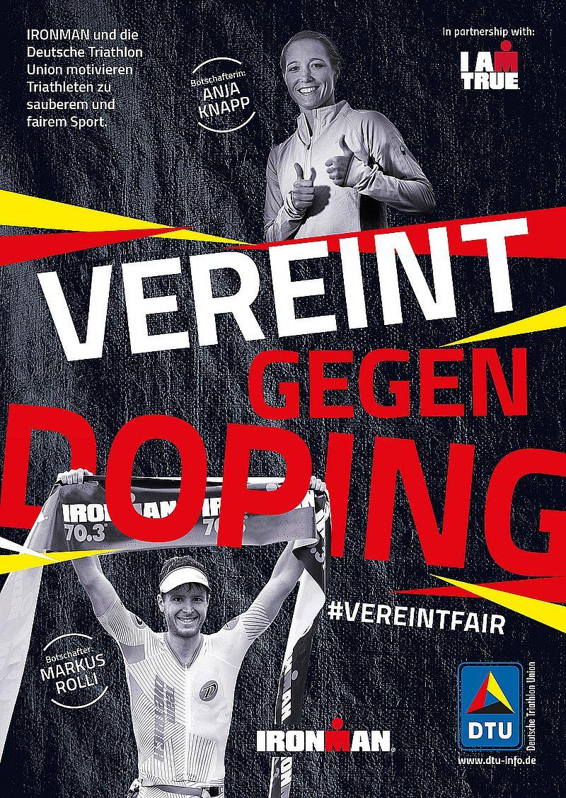 Für DTU Geschäftsführer Matthias Zöll ist es besonders wichtig, im Kampf gegen Doping nicht nur den Leistungssport in den Fokus zu nehmen: „Für uns als Verband ist es eine der Kernaufgaben, aktiv für fairen Sport in ganz Triathlondeutschland einzutreten und dabei auch die Amateur- und Hobbysportler einzubeziehen und aufzuklären. Mit der Kampagne „Vereint gegen Doping“ mit Unterstützung eines starken Partners wie IRONMAN, sowie den Spitzen-Athleten an unsere Seite gelingt es im Umfeld der Wettkämpfe hervorragend, diese Zielgruppe zu erreichen und Gehör für dieses Thema zu finden.